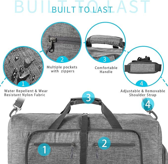 Foldable Travel Duffel Bag-Weekender Bag with Shoes Compartment, Overnight Bag for Men Women Waterproof & Tear Resistant (Gray)
